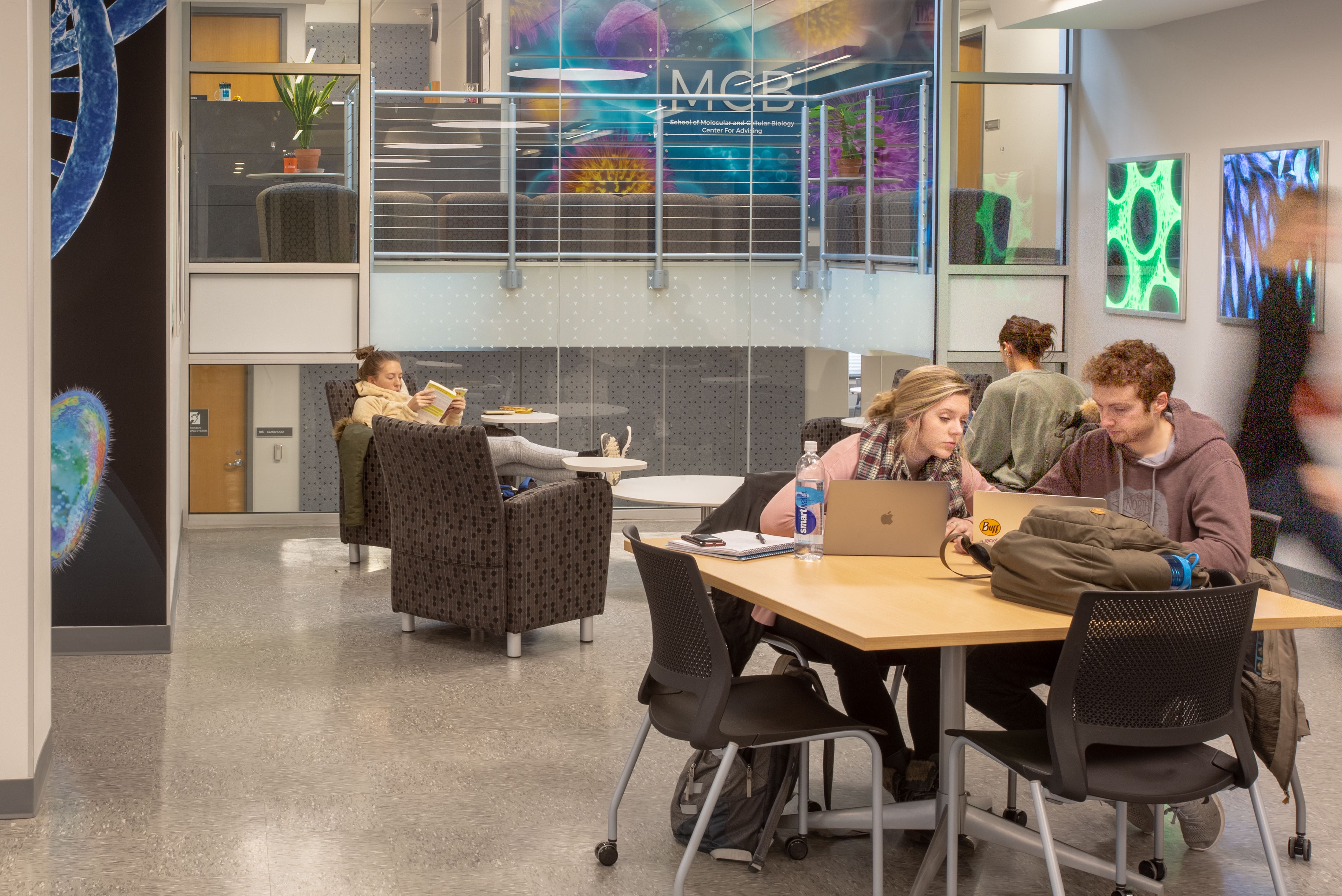 The MCB Learning Center is available to students for individual or group study sessions. Most MCB teaching assistants, and some instructors, host office hours in the center. Specific course and instructor hours are posted at the entrance. Students can meet with any TA assigned to their specific MCB course, regardless of the discussion they are enrolled in. The room is equipped Apple computers for students.